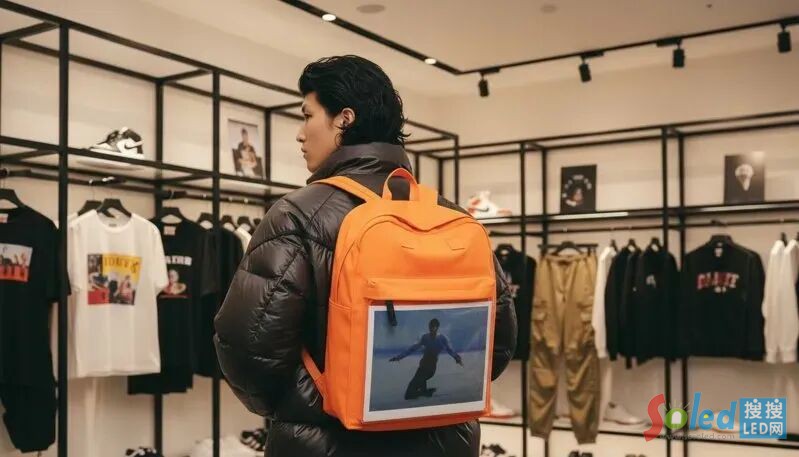 彩色電子紙潮牌背包(圖片來源:達(dá)運(yùn))精品門店服務(wù)人員佩戴4.01英寸彩色電子紙名牌,可動(dòng)態(tài)顯示當(dāng)日主打單品、限時(shí)優(yōu)惠或造型靈感,拉近與顧客的互動(dòng)距離,提升沉浸式購(gòu)物體驗(yàn)。